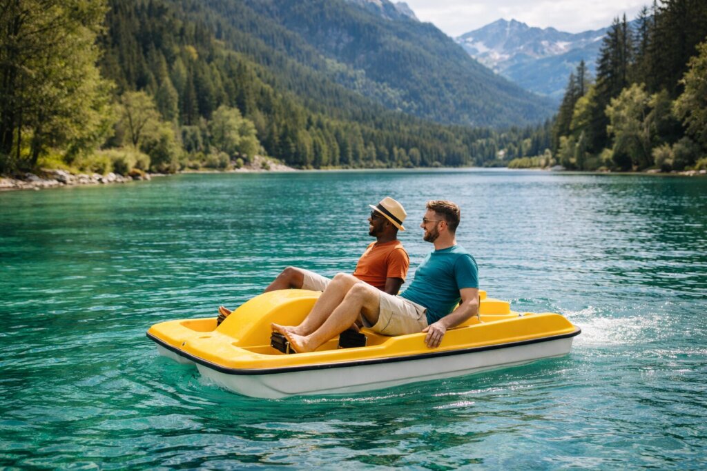Vous faites du pédalo ou du bateau.Vous choisissez ce que vous voulez faire.